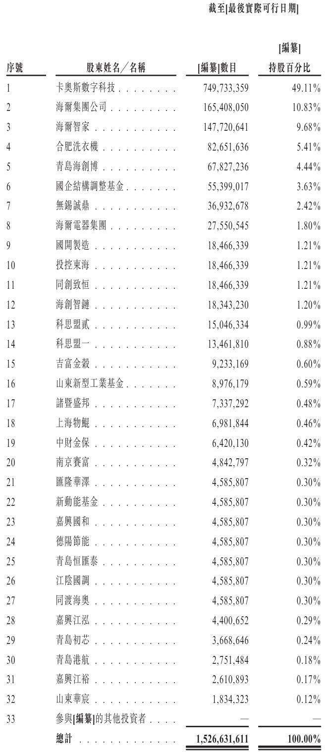 中财金连结股为0.42%,约18.10%由海尔集团公司其他从属公司或受节制实体配合持有。卡奥斯施行董事别离为陈录城、柴纪强;招股书显示,非施行董事别离为周云杰、展波、、卡奥斯2025年前9个月营收为44.2亿元。